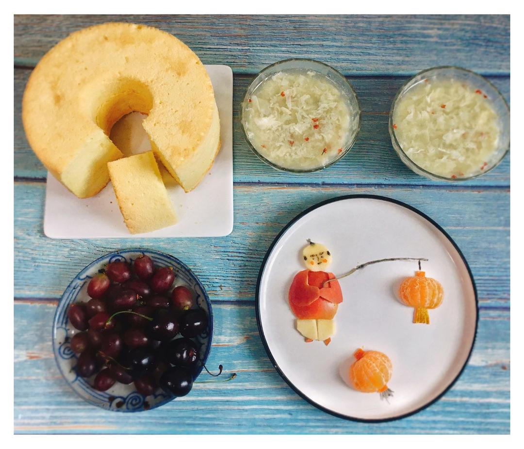 蛋花圆子+戚风蛋糕+提子