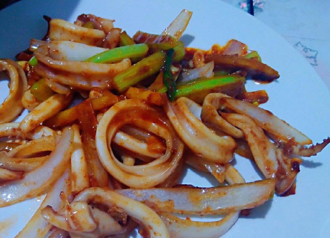 放了烧烤酱,加点芹菜很棒,有点李记鱿鱼的赶脚