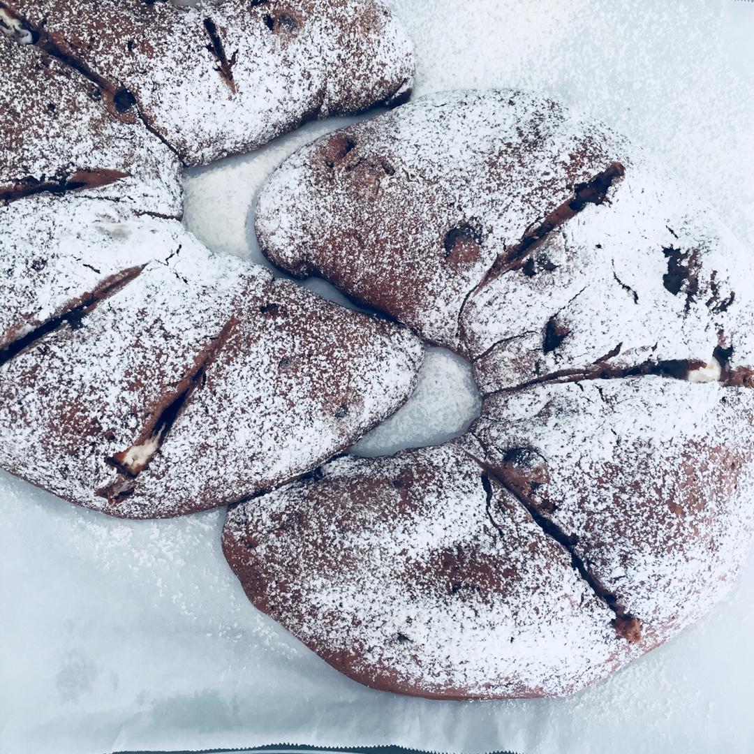 在海南的倒数第二天烤了红豆奶酪馅儿的巧克力软欧包,哎虽然还是不咋成功,和红豆司康一起带着当回家路上的口粮啦~