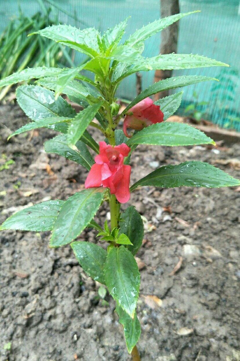 雨中第一朵凤仙花(指甲花)静悄悄地开~