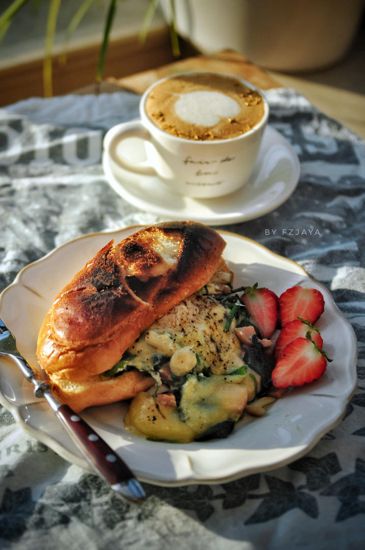 开工第一天,阳光甚好,终于回归了我的小餐桌,第888个作品。想念了好久的面包,东发道的吞拿鱼包做三明治吃,大火🔥#享瘦生...