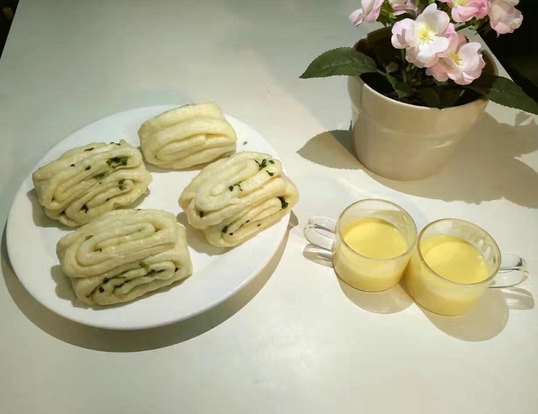 自制葱花卷 + 橙汁