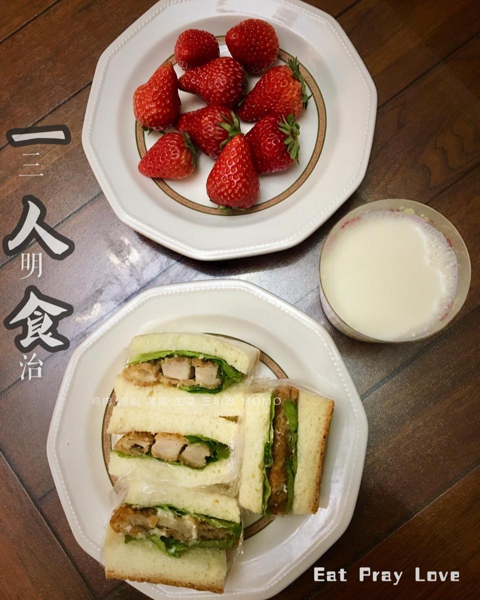 初中生的早餐:三明治🥪+草莓🍓+牛奶🥛