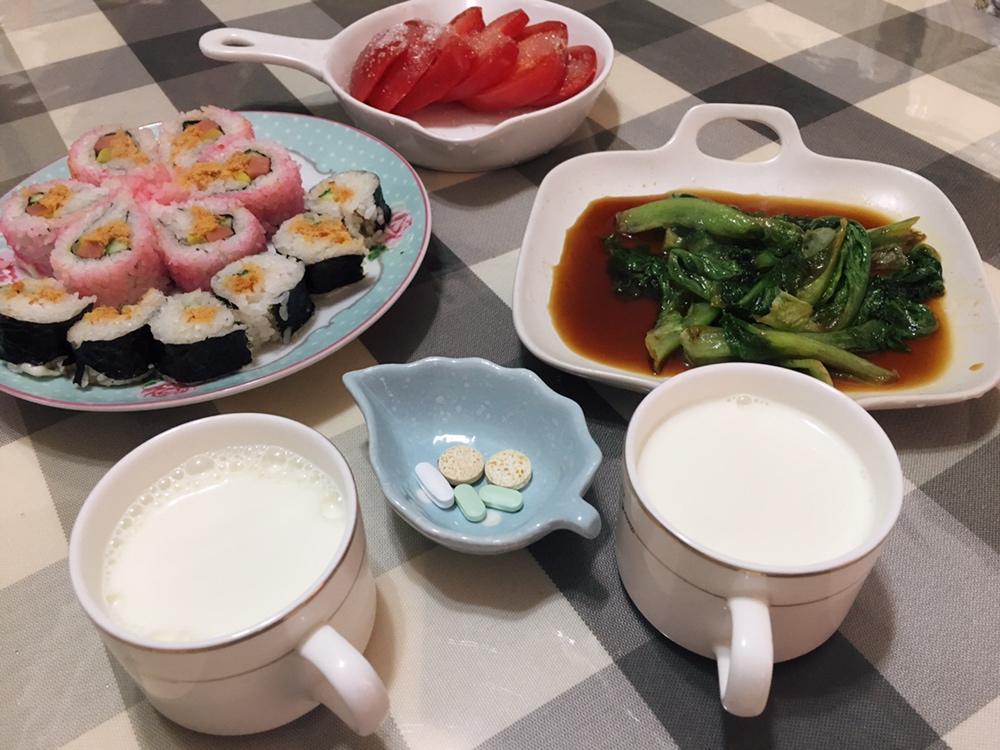 寿司+牛奶+蚝油生菜+白糖番茄