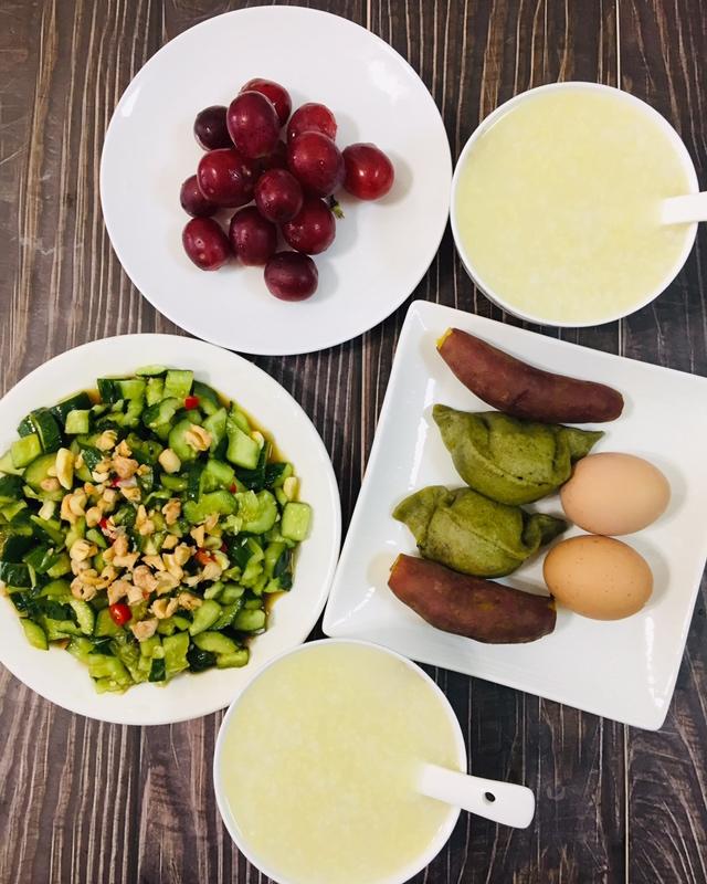 今日早餐:小米粥、清明粿、小香薯、鸡蛋、拍黄瓜、提子。女儿考试结束休整两天半。老公出差了,和...