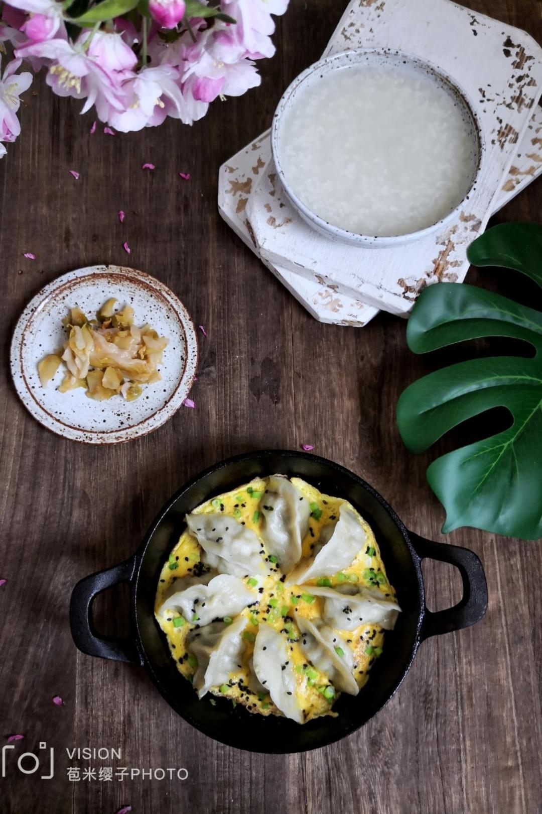 抱蛋煎饺,清粥小菜