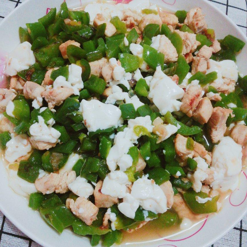 青椒一个、鸡胸肉一小块洗净切丁待用,