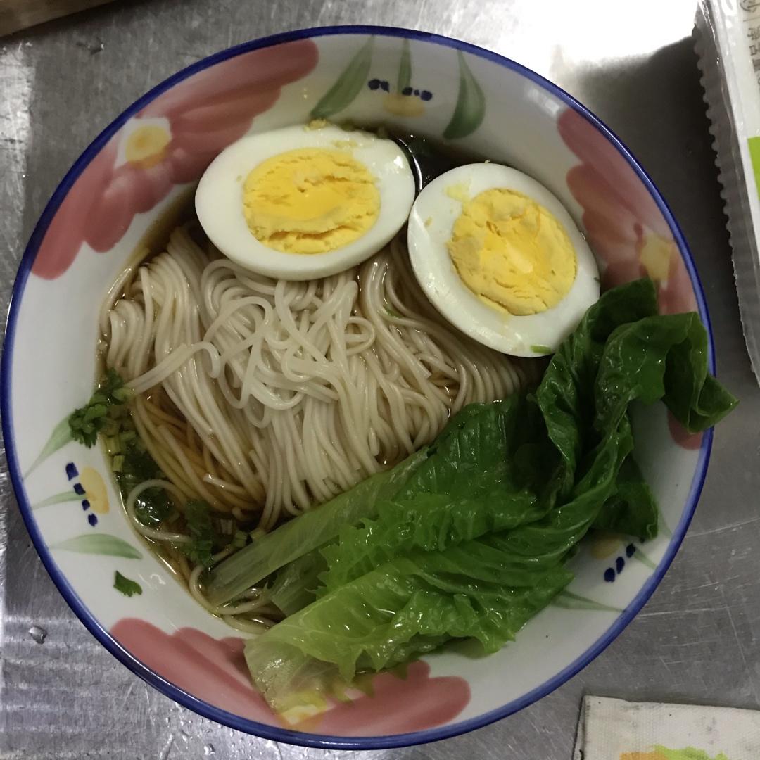 面条没摆好,其他的还好,为了增加营养又放了一个煮蛋烫了一些青菜。母上大人很满...