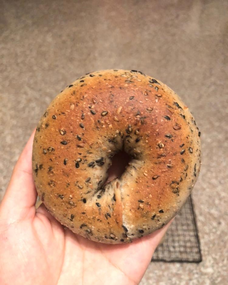每次烤贝果都只有一个问题:收口捏不紧,一煮就散一烤就爆,其他没毛病