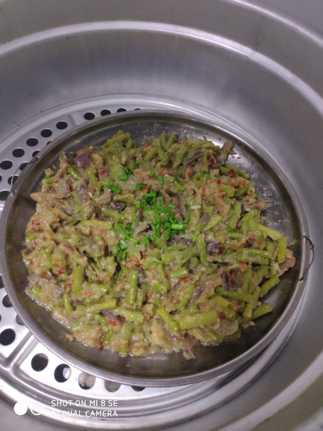 (家乡特色蒸菜,茄子和豆角有伴喽)很想儿时妈妈的味道了,现在自己当了妈妈了,想吃当然得自己动手喽,第一次尝试蒸菜相当成功...