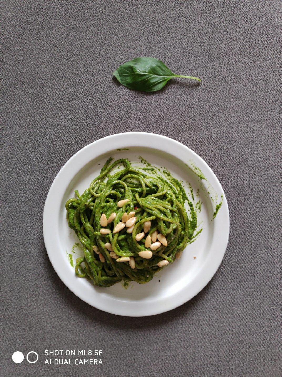 之前买过会员,记录了一个大厨教授的青酱意面的做法,大约是一比一的橄榄油和新...