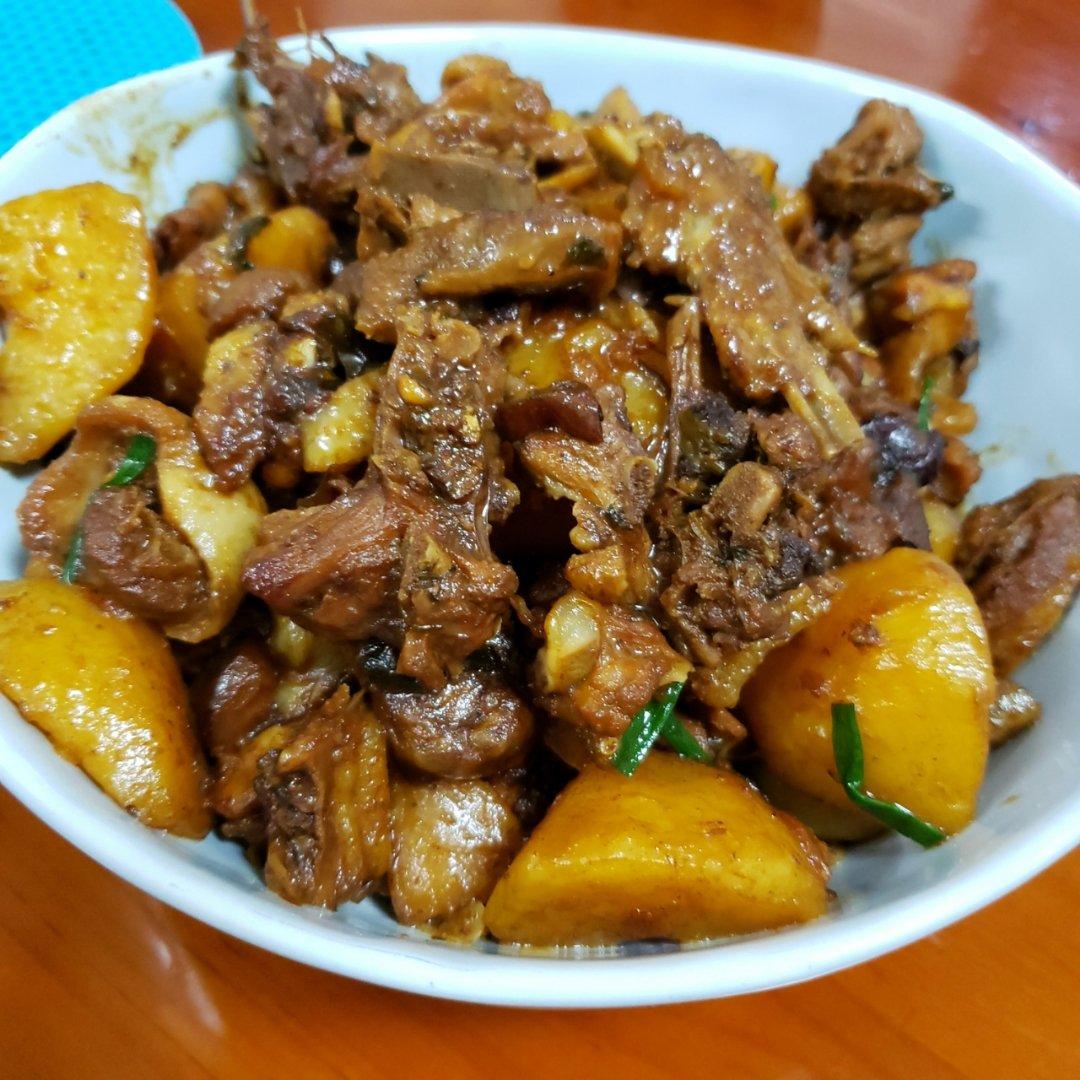 土豆烧翅根,蒜香排骨,番茄炒鸡蛋,炒南瓜叶