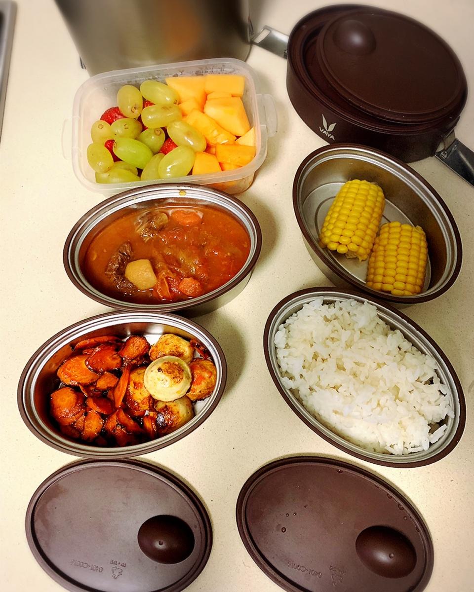 2⃣️Day🍱自己選的便當盒爬都要爬起來做😫雜錦丸子配胡蘿蔔🥕牛腩羅宋湯🥘Recess吃的玉米🌽和水果🍇#Shirley...