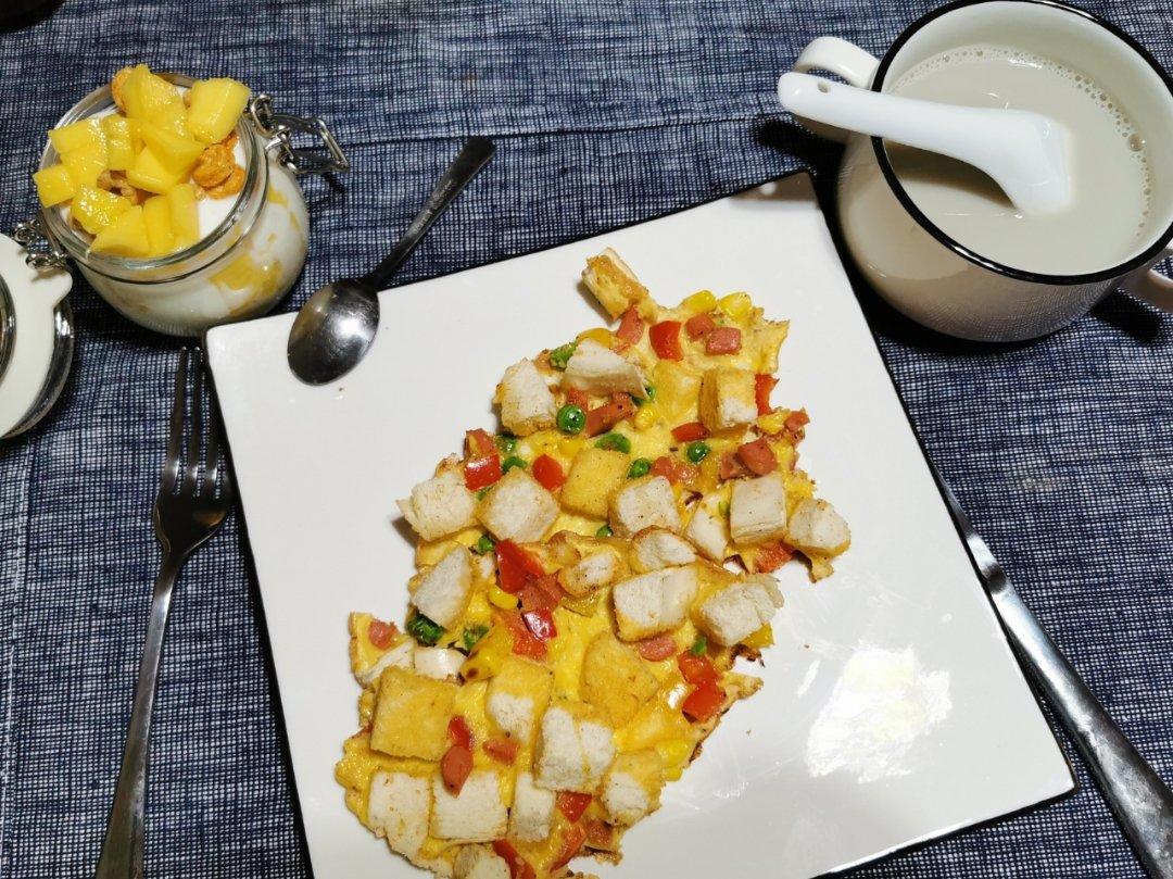 凝固不好,而且馒头切太大了,没炒到时候,继续在努力,孩子说很好哦。