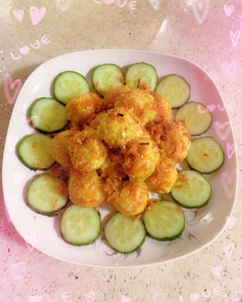 西兰花胡萝卜肉松饭团