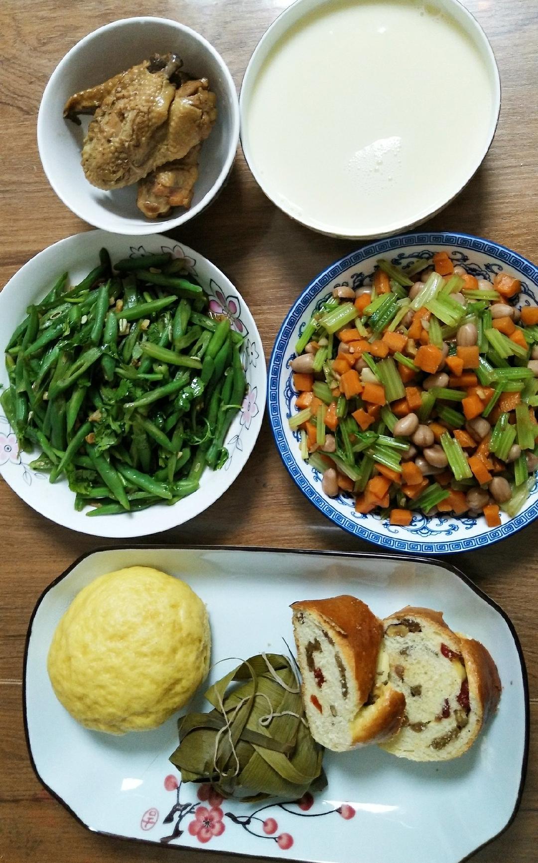 周末孩子还要上班,一天也只有早晨能在家吃上饭,做一顿营养健康又清淡的早餐,祝你健康快乐,心想事成。(还有茶叶蛋没上镜)