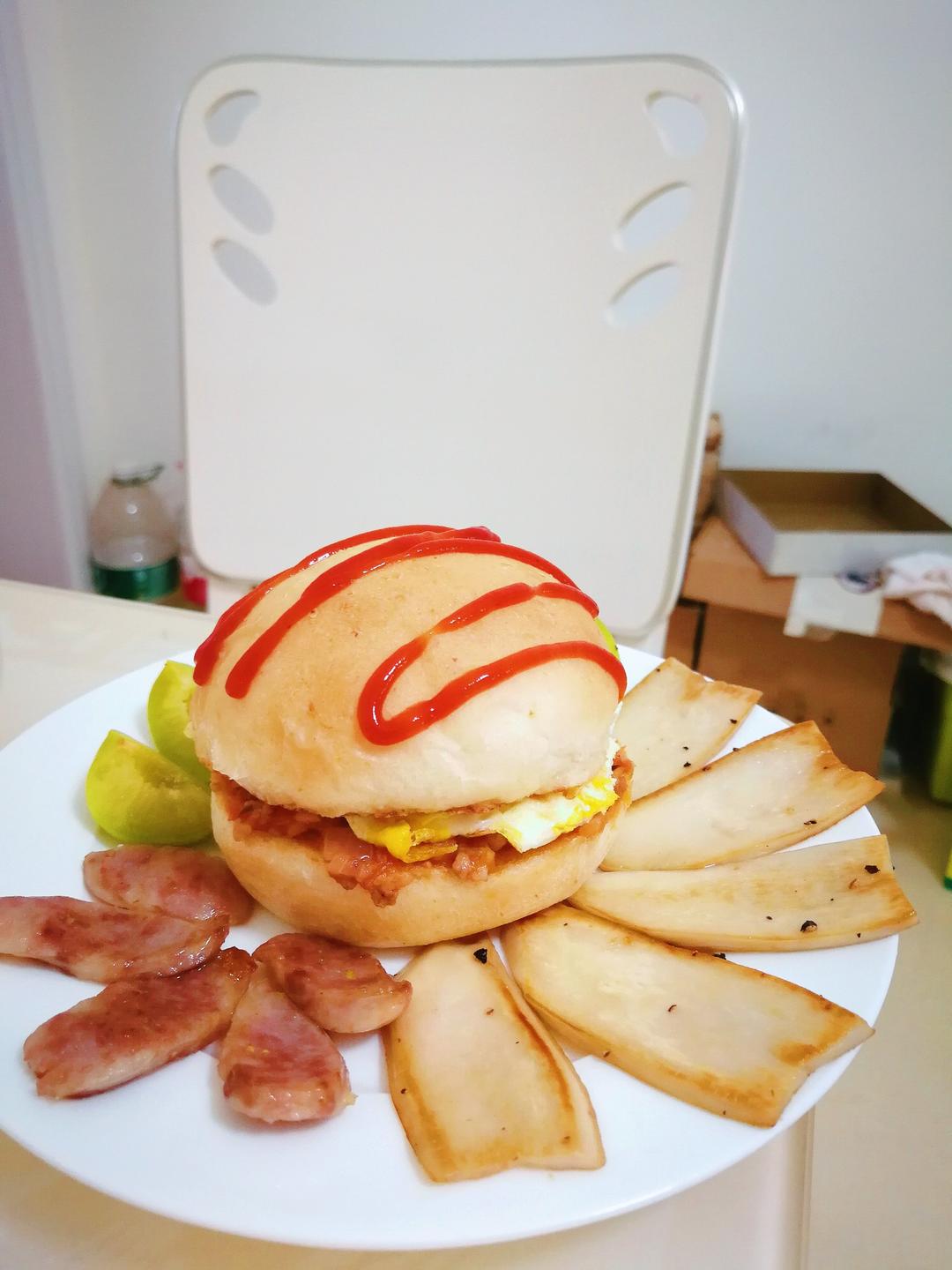 摆得美美的,结果被娃一股脑的全夹汉堡里去了