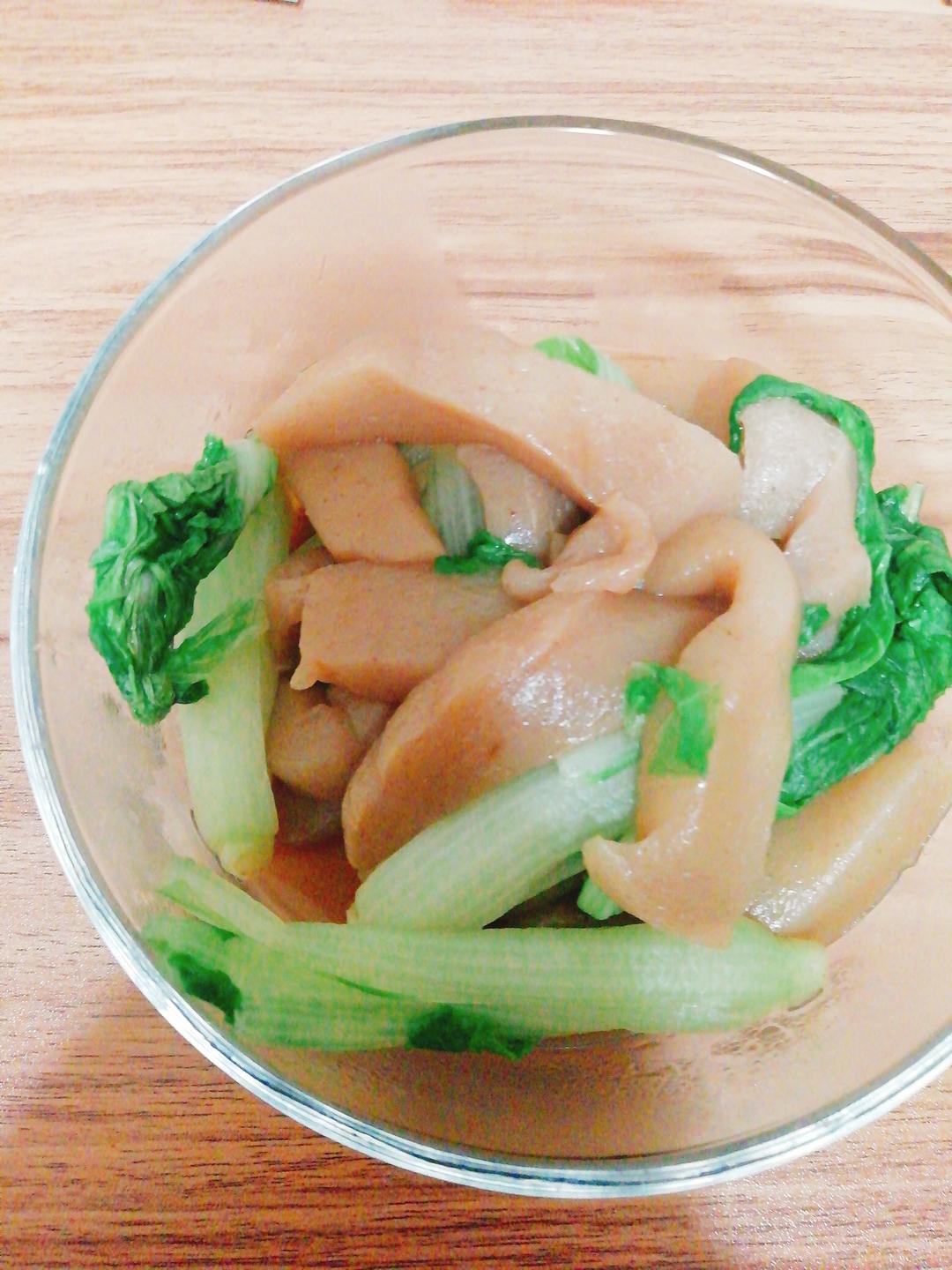 青菜炒魔芋,今天下班去711要了一份鱼蛋买一送一太饱了不想吃肉