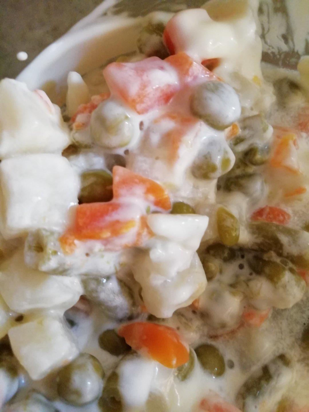 来点沙拉。沙拉酱升华的同时也增脂了。可谓一举一得一失。