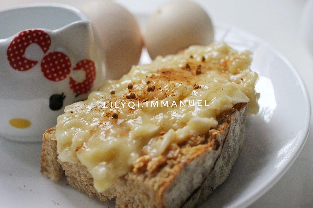 这儿还有一个三明治是留着交作业的。 某日早餐,石磨全麦面包,花生酱,厚厚香蕉泥,撒肉桂粉。话说我今晚还准备这么...