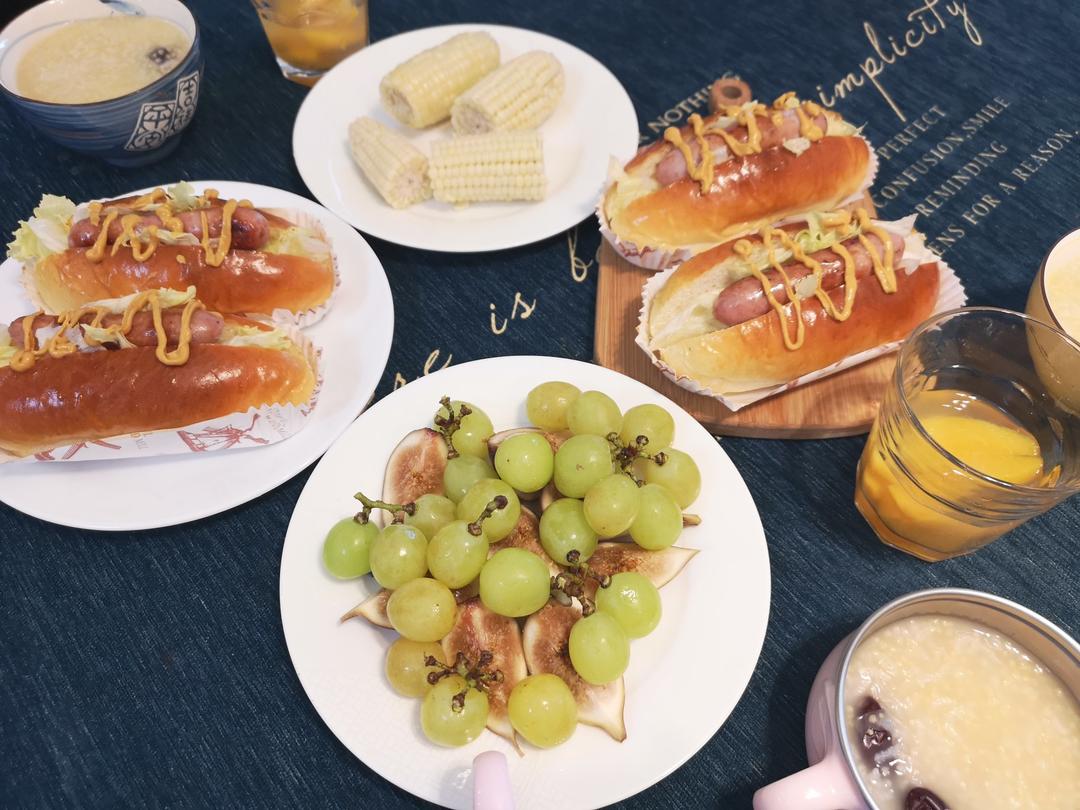 为了用一下黄芥末酱,烤了面包买了香肠,大早上做个🌭 然后小朋友居然说不要吃酱,再默默把她面包上的酱擦掉[捂脸][捂脸][...