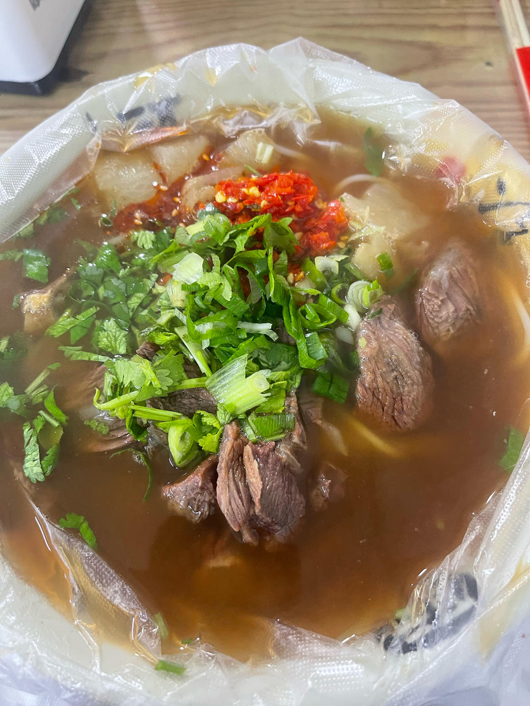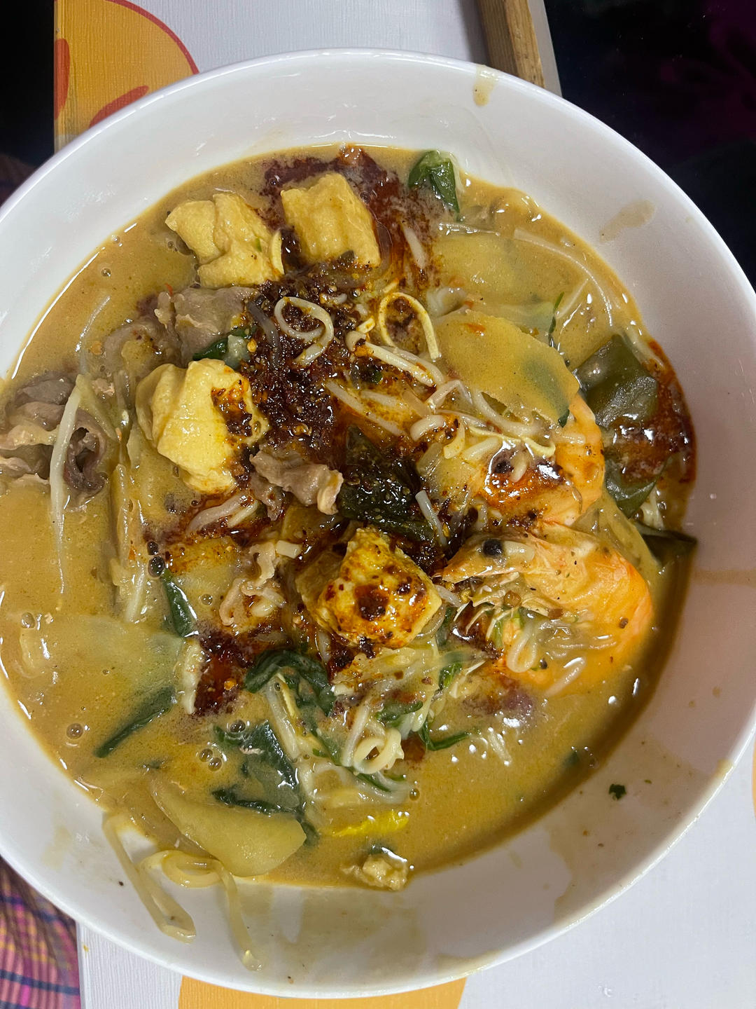 室友妹妹买的生包曹师傅,我们又加了大虾和肥牛,变身豪华麻辣烫...