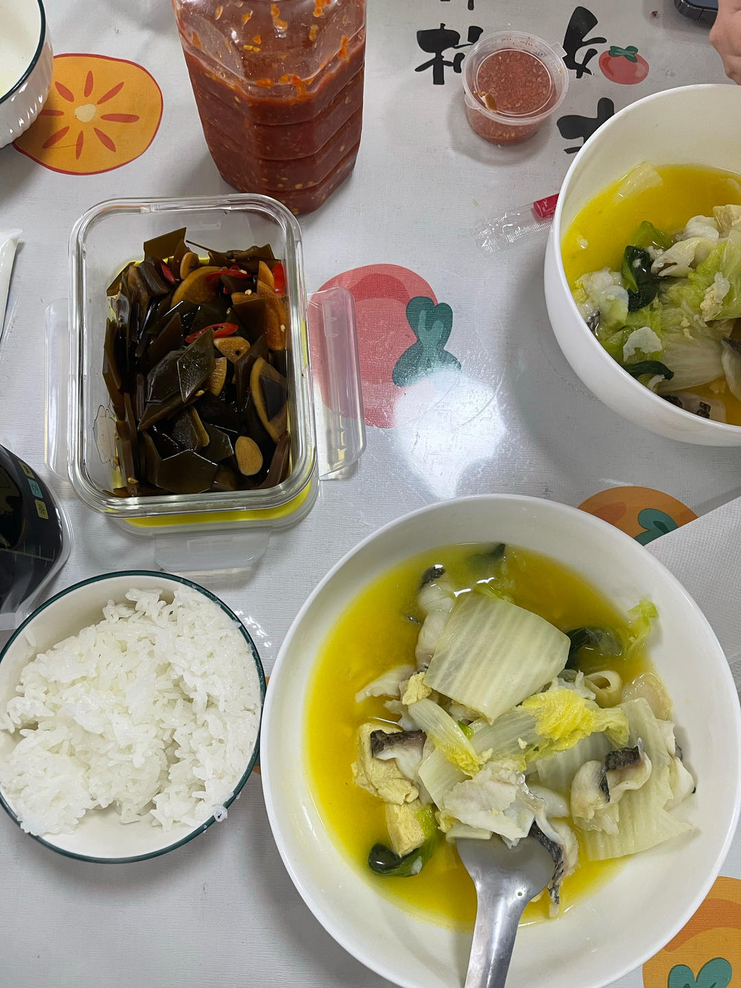 下午三点多做了一口酸菜鱼,料少了有点淡,得亏有那个海带咸菜😊