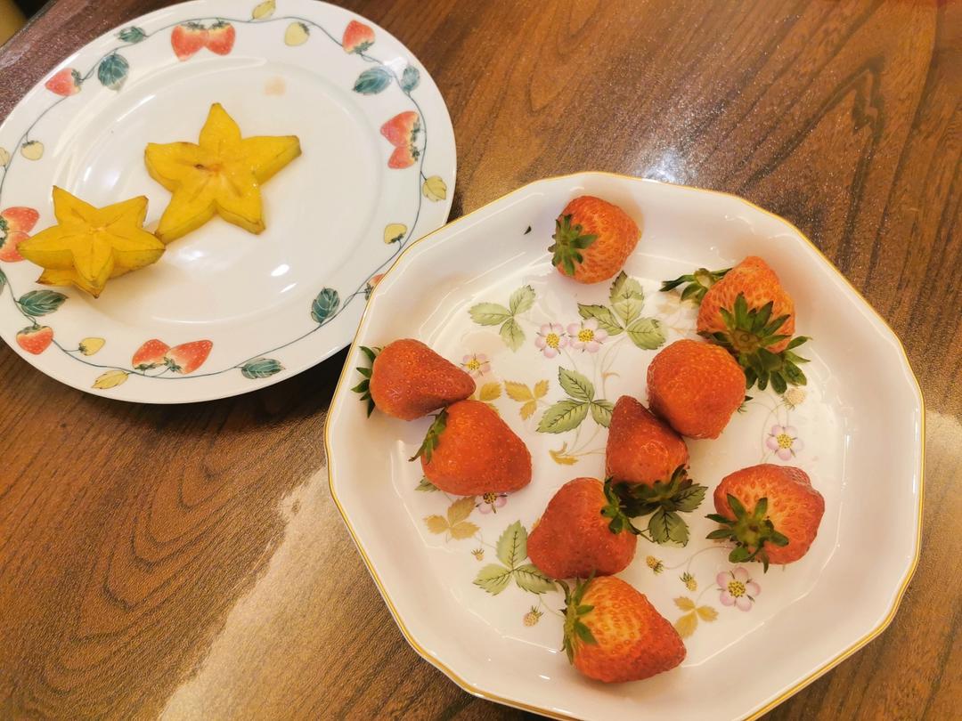 我闺女是吃水果小天才。饭后草莓🍓吃了四颗,杨桃吃了四片。