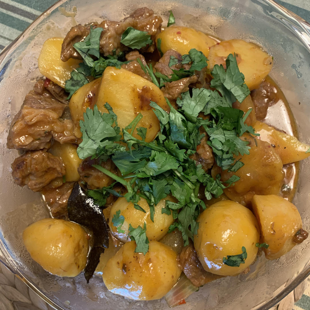 两餐,昨晚剩的板栗🌰牛腩,连带汤汁一起炖土豆🥔,😋