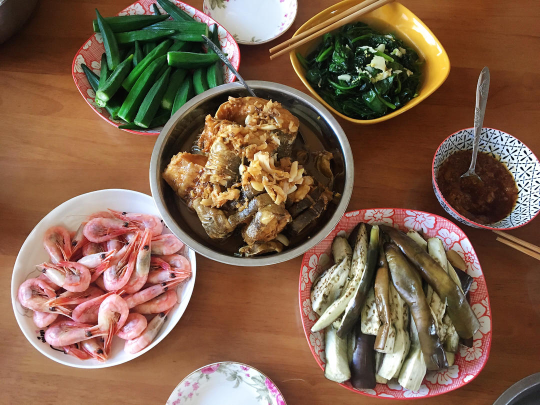 还有一盆(是的,一盆)煮花生没拍上,你敢信这是三个人的餐桌吗🙃