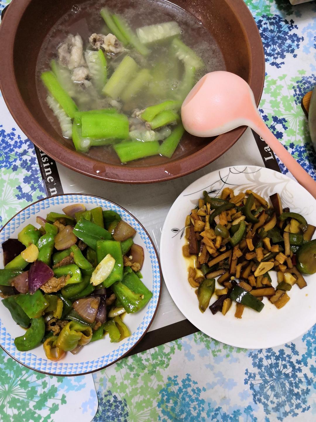 辣椒炒肉 丝瓜排骨汤 早上剩菜