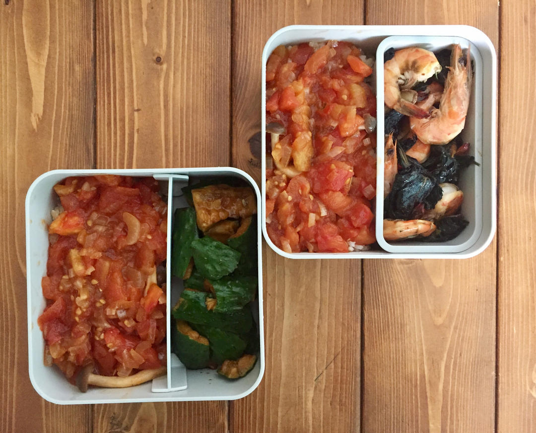 午餐:紫苏虾/番茄盖饭
