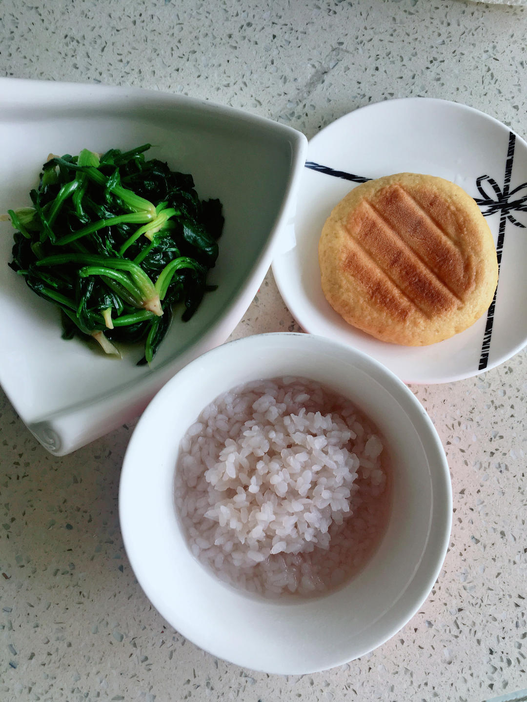 清炒菠菜,玉米饼,魔芋粥