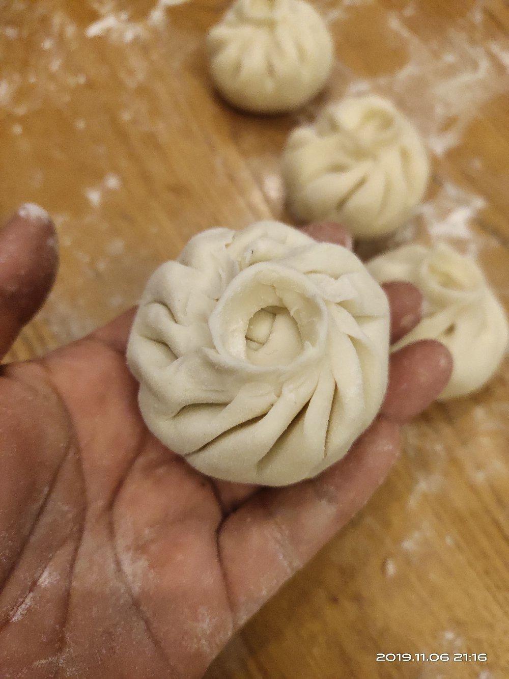 昨晚又带源源练习包包子,源源进步很大,可以包出这么多褶这么好看的包子啦!😘