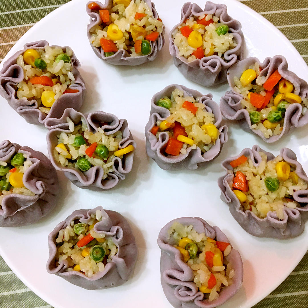 家里正好有牛肉,加点青椒和茄子做成馅,用饺子皮做成小包子的形状,不粘...