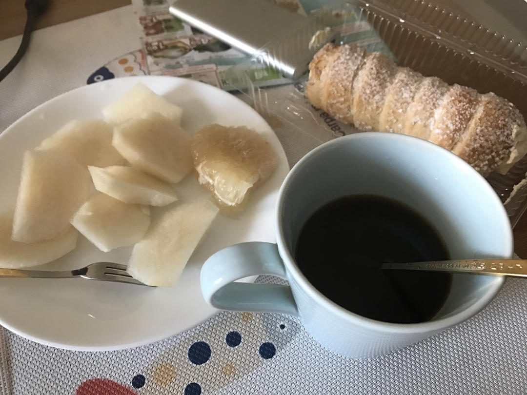 下午茶,很喜欢吃甜点,但又怕胖l😅所以先吃水果和黑咖啡☕️,这样甜点🍮也就吃不了多少了,算是自我安慰吧😂