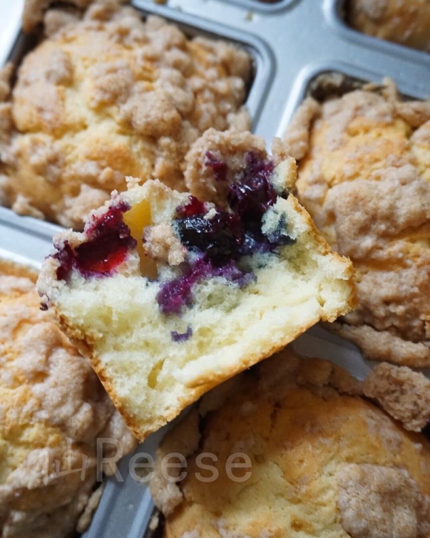用了黄油、酸奶油做的蛋糕糊加了蓝莓更好吃😋