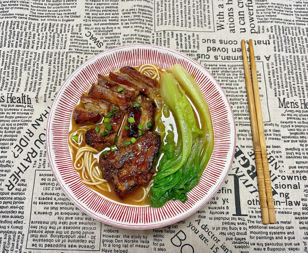 用做烧排骨剩下的边角料做的叉烧肉汤面,满足(´▽`)