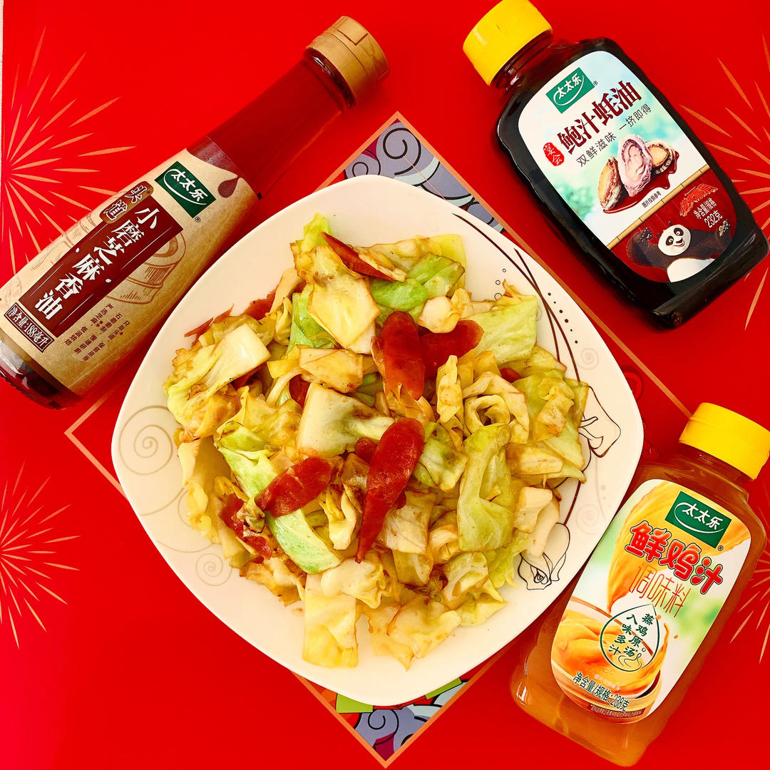 腊肠炒包菜,开始清冰箱系列,今天又去备了些菜,开始明天的带饭生活。明天开工。初六快乐呀。