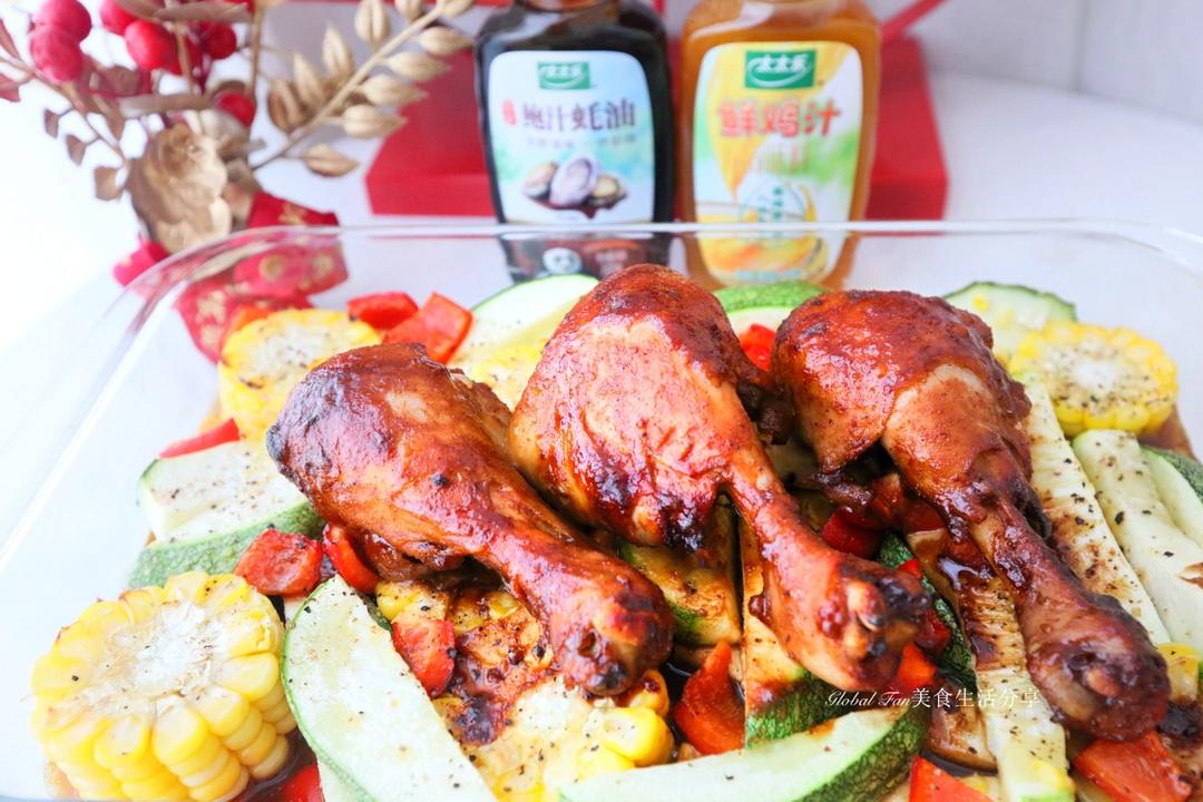 今天用太太乐鲜鸡汁和鲍汁蚝油调制了秘制烧烤酱,做了一道色香味俱全的五彩时蔬烤鸡...