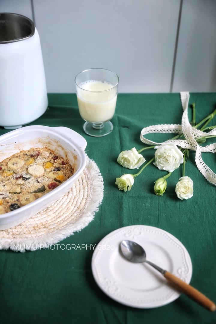 烤麦片水果布丁,豆浆。早上又忘记发了。