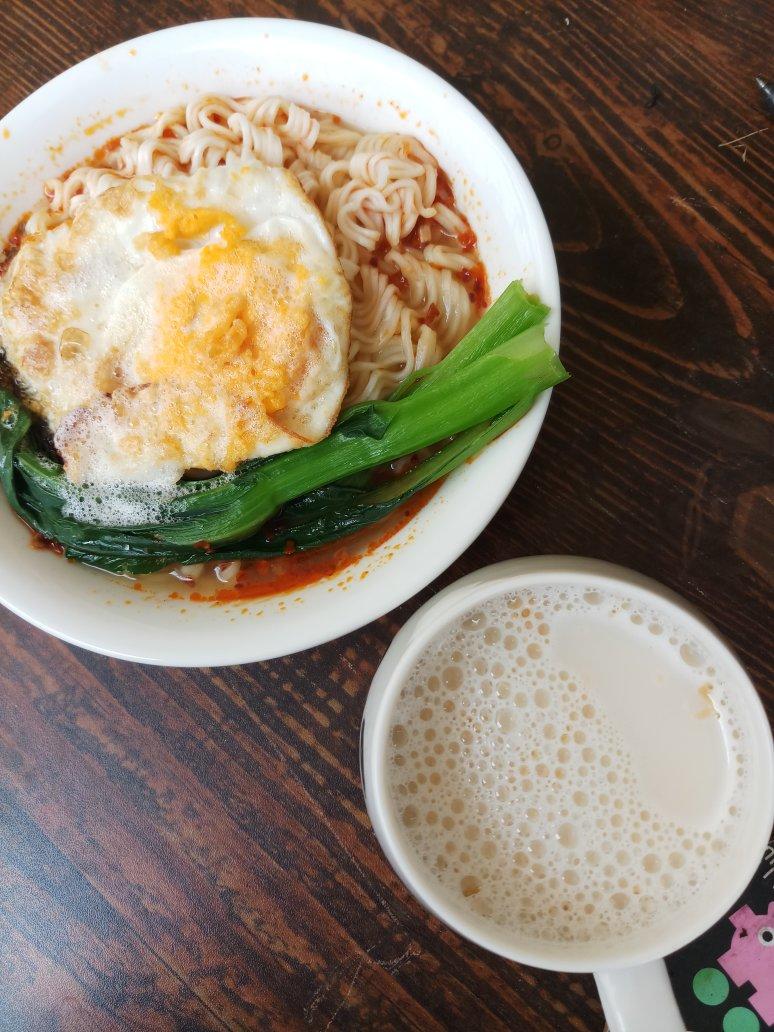 喜娘他们吃中午的饺子~不爱包馅儿食物的我就煮了包康师傅金汤肥牛,加了半包牛奶让汤汁变得浓稠,加了一颗蛋五个肥牛卷,几片包...