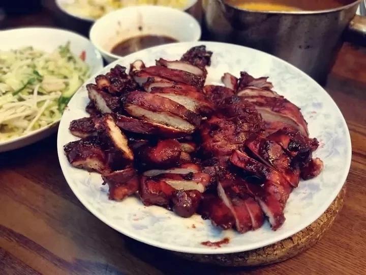 烤鸡翅.昨天的隔夜菜卤鸭爪,荷兰豆炒腊肠