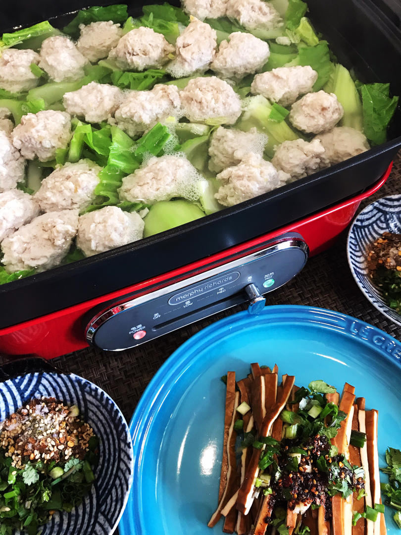 青菜🥬圆子和凉拌豆干,蘸水是来自贵州的糊辣椒🌶️😊
