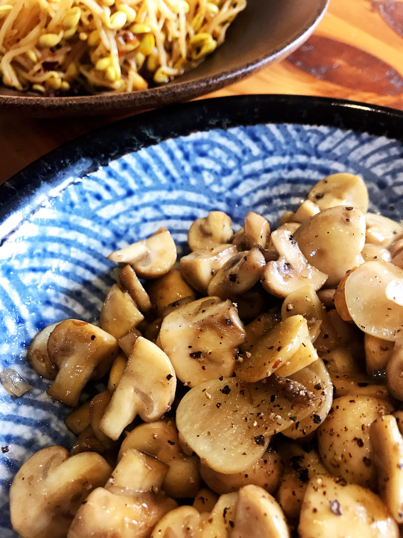 黑椒口蘑🍄和凉拌黄豆芽,最近体重秤上的数字让人好忧伤😭从今天开始饭要少菜要素💪💪#午餐•2020...