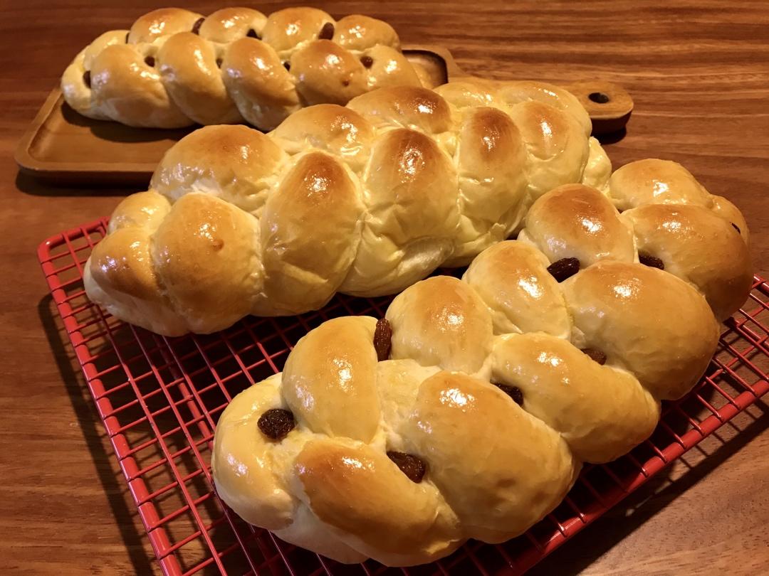 做了一个餐包,6个奶油夹心,结果一下孑都吃光了,按老师的要求打面,面包很软,好吃。
