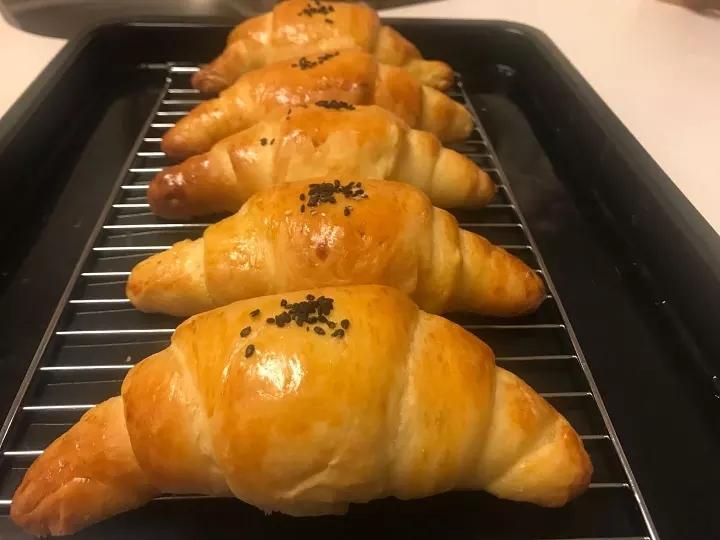 这个方子第一次做,很松软,就是黄油有点漏出来了,以后要注意捏紧一点。