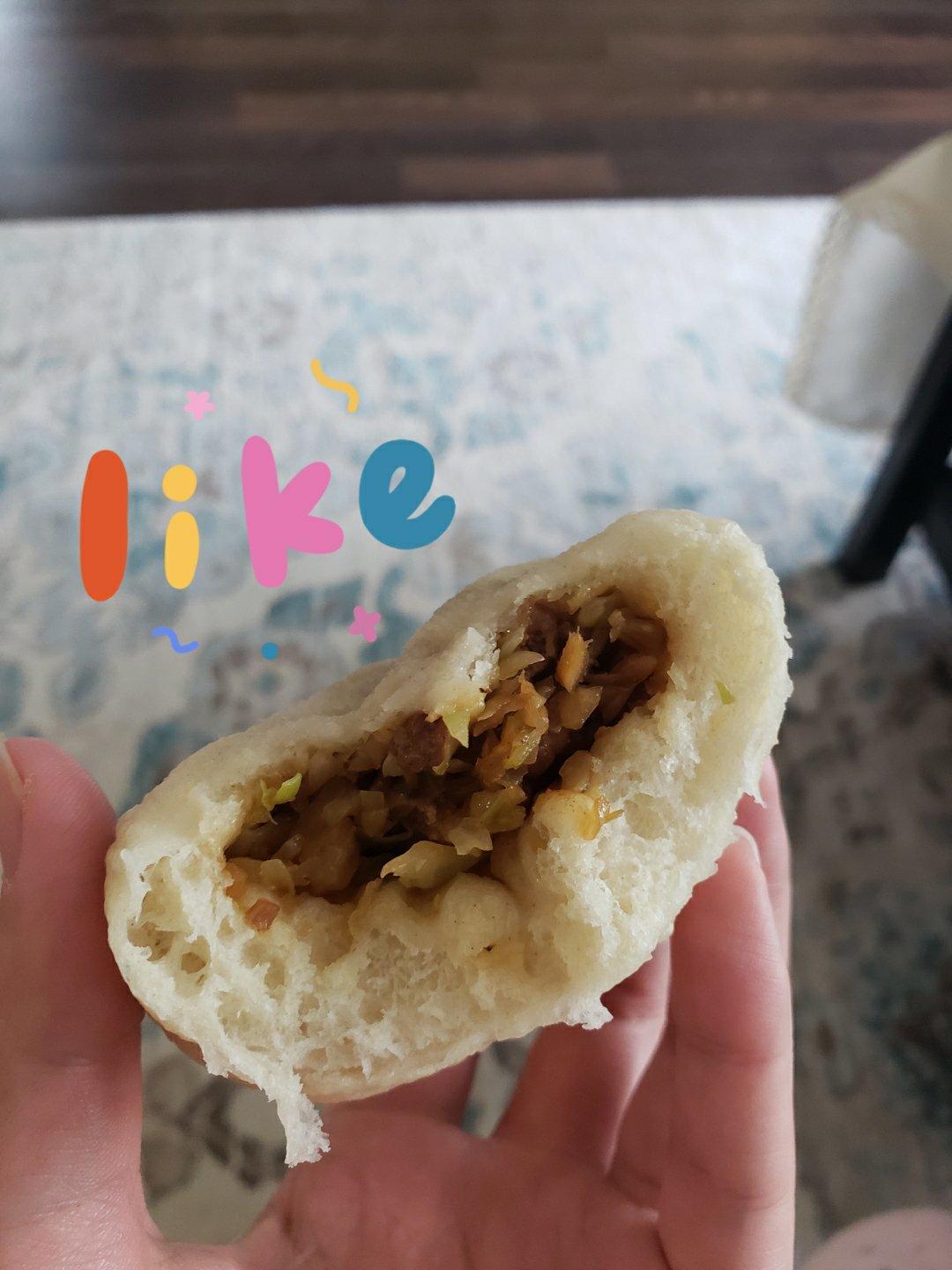 馅是按照方子做的,很香很好吃,发面就是面粉温水和酵母,刚刚出炉的很软乎,简直了!一口气4个不是问题🤣🤣🤣#午餐•2020...
