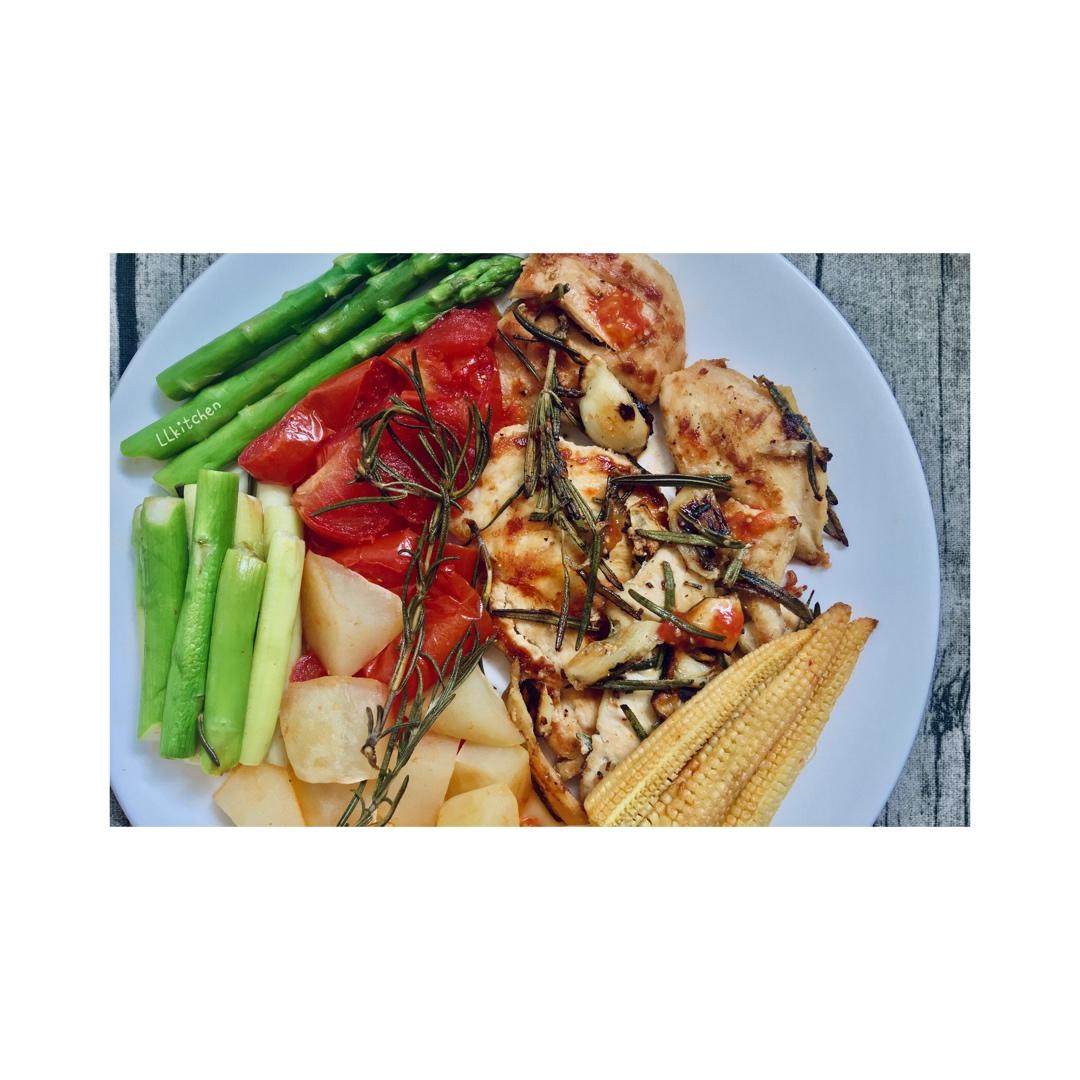 芦笋➕番茄➕土豆➕玉米笋➕鸡胸肉