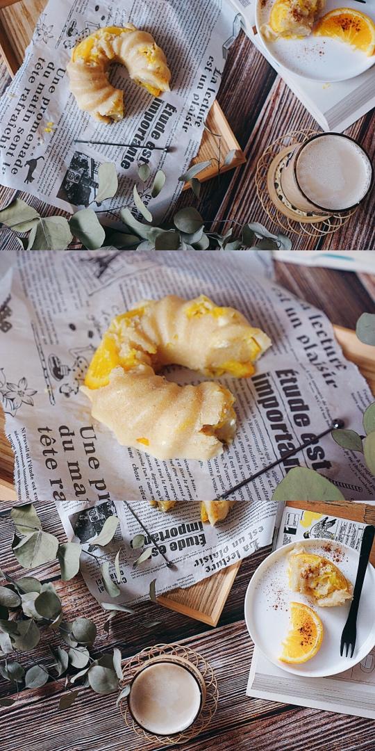香橙🍊奶酪🧀️蒸糕&拿铁。软软糯糯满满橙子香气的奶酪糕呀~好吃又不上火。最适合甜...